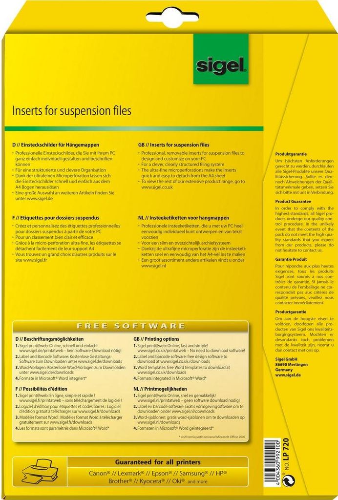 Sigel LP720 - Hängeordneretiketten - 156 Stck. |