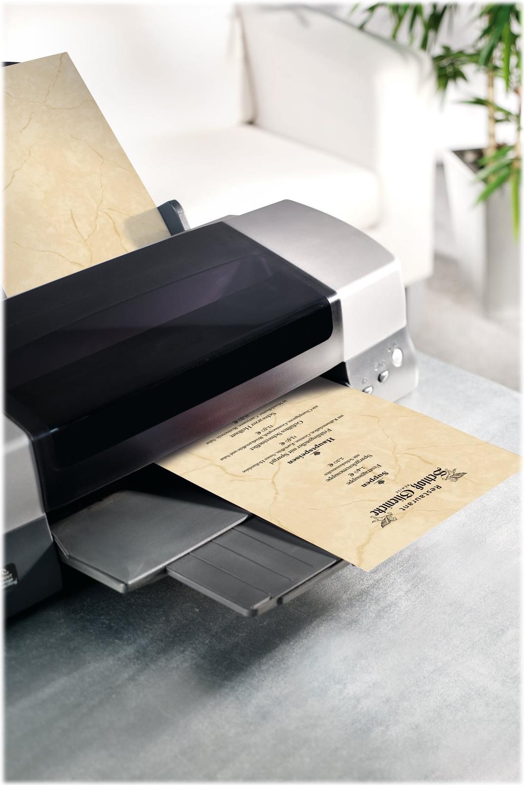 Struktur-Papier Granit beige mit beidseitigem Motiv, 200g/m -Feinpapier zum Bedrucken mit InkJet- und Laser-Drucker sowie zum Kopieren geeignet. Das Papier ist vielseitig einsetzbar beispielsweise als Brief, Einladung, Speise- und Menükarte oder Info-Aushang. Im Lieferumfang sind 50 Blatt im Format DIN A4 enthalten.