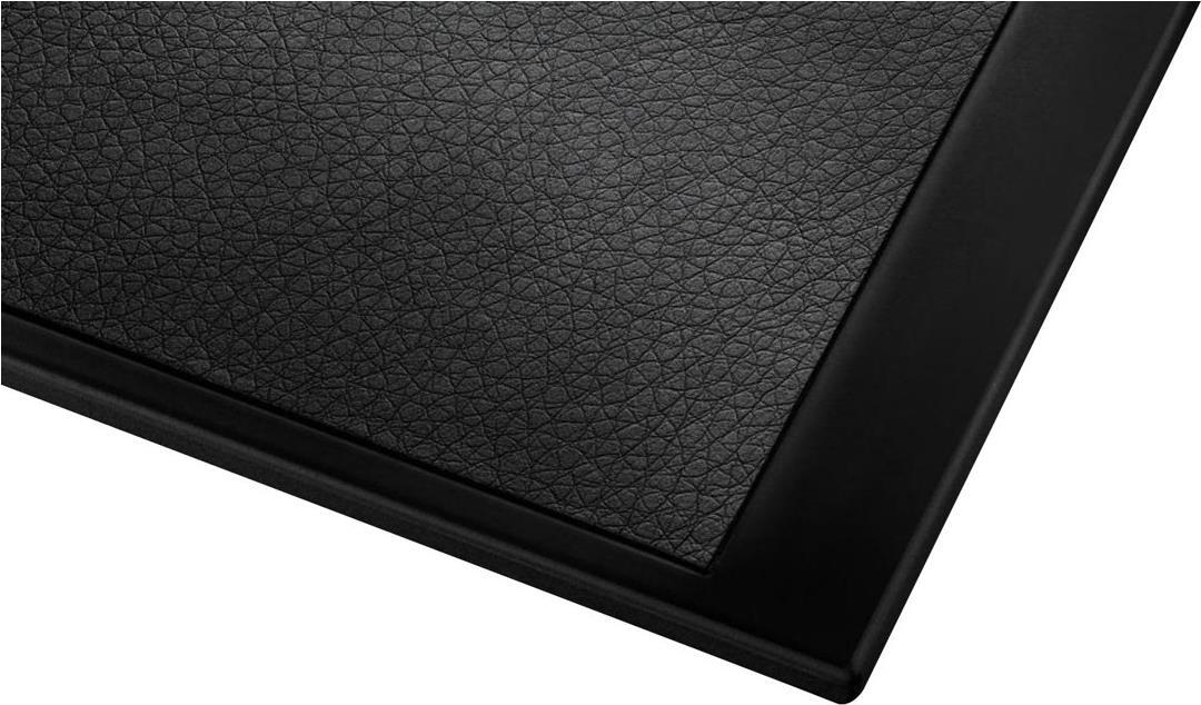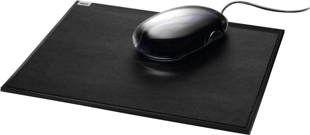 Schwarzes Mauspad aus hochwertigem, feingeprägtem Lederimitat in sportivem, zeitlosem Design. Umrandet wird die Kunstlederoberfläche von einem ABS-Kunststoff mit haptisch erfahrbarer Soft-Touch Beschichtung. Die rutschfeste Unterseite gewährleistet jederzeit einen sicheren Halt sowie eine einfache und exakte Mausführung. Dank der mitgelieferten Silikonstopper auch zur Benutzung auf glatten Oberflächen (z.B. Glas) geeignet. Besonders möbelschonend aufgrund des hochwertigen Mikrofaserstoffs, der auf der Unterseite angebracht ist.