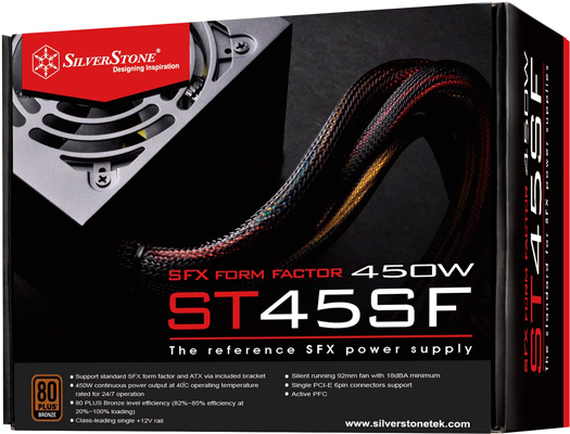 Trotz seiner geringen Abmessungen überzeugt das ST45SF mit einer Funktionalität, die bisher nur der Eliteklasse von ATX-Netzteilen vorbehalten war - wie 80+ Bronze-Wirkungsgrad, temperaturgesteuertem Lüfter, 50°C/40°C-Temperatureinstufung und einer extremen Zuverlässigkeit: wie geschaffen für den Dauerbetrieb. Von Experten geschätzte Eigenschaften - wie separater +12 V-Strang und 8/6-polige PCI-E-Anschlüsse zur lückenlosen Unterstützung von Multi-GPU-Systemen - runden das Angebot ab. Für SFF-Anwender und für SilverStone ist das ST45SF mehr als nur eine Aufrüstungskomponente, sondern ein wichtiger Meilenstein im Bereich DIY-Desktop-Computer.