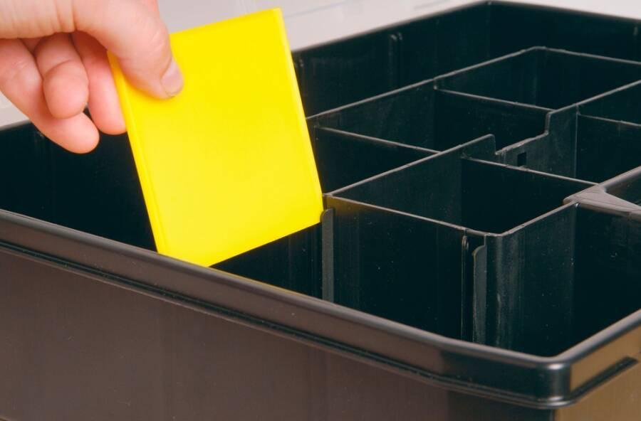 Organizer SortMasterInnenteiler beliebig anpassbar – bis zu 1024 verschiedene Konfigurationen möglich. Kleinteile bleiben an ihrem Ort – kein Verrutschen innerhalb der Fächer. Angewinkelte Ecken für eine komfortable Aufbewahrung von sperrigen Wer