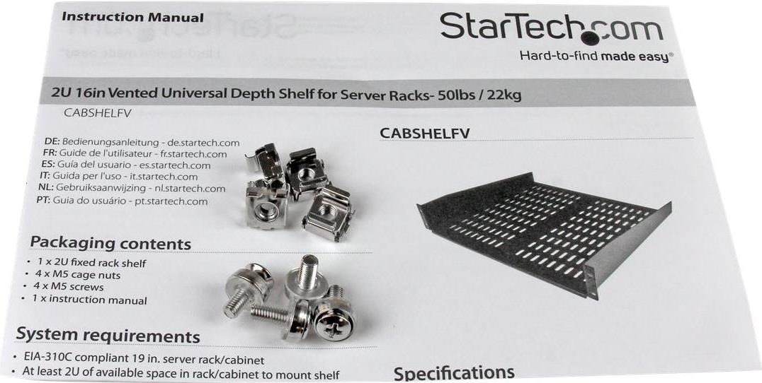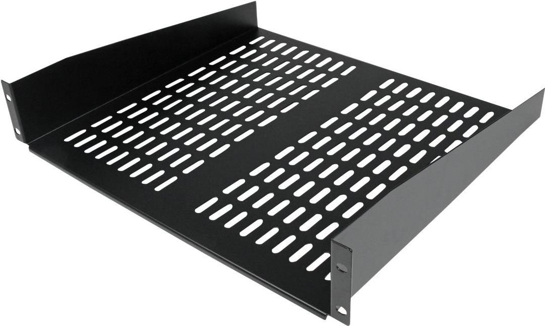 StarTech.com 2 HE Universal Server Rack - Schrank Fachboden bis 22 Kg - 40cm Tief - belüftet - Rack-Regal (Konsole, belüftet) - Schwarz - 1U - 48,3 cm (19") (CABSHELFV)