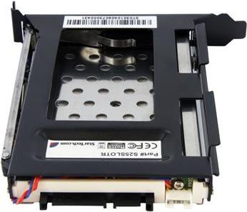 Das einschublose Festplattenrack S25SLOTR kann in jeden freien (Full Profile) PCI-Erweiterungssteckplatz eingesetzt werden und ermöglicht den einfachen Zugang zu einer nackten 2,5-Zoll-SATA-Festplatte oder zu einem Solid-State-Laufwerk (SSD) über die Rückwand des Computergehäuses.