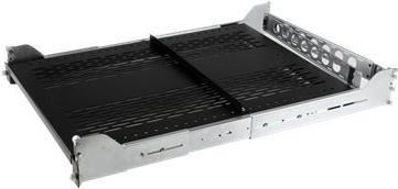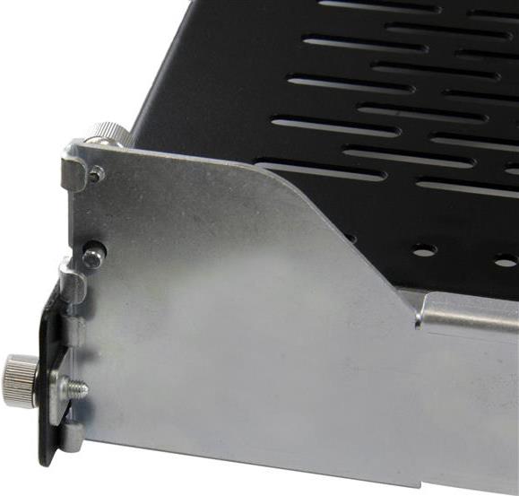 Dieser ausziehbare Fachboden bietet eine Traglast bis zu 22,7 kg, eine belüftete Konstruktion aus kaltgewalztem Stahl für besseren Luftstrom und Strapazierfähigkeit im Serverraum oder in Kabelschrankinstallationen.