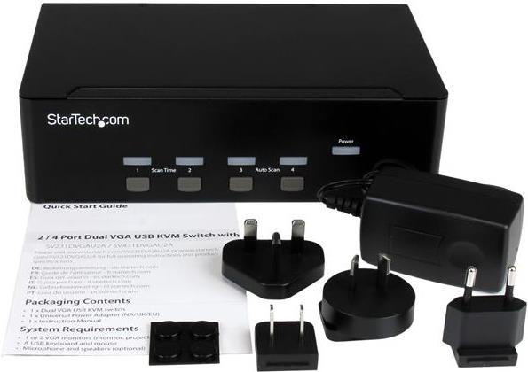 | Produktbeschreibung | StarTech.com 4 Port KVM Switch mit Dual-VGA und 4-fach USB Hub - USB 2.0 - KVM-/Audio-/USB-Switch - 4 Anschlüsse |