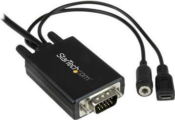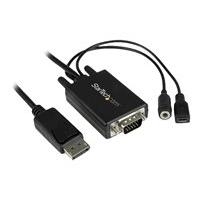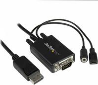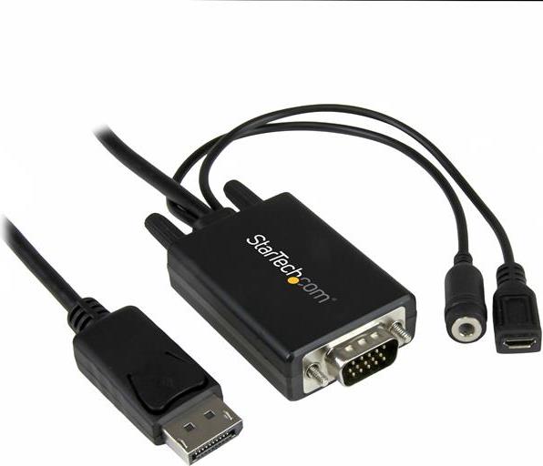 Dieses einzigartige 3 m lange DisplayPort -auf-VGA-Adapterkabel ist mit einem integrierten Audio-Anschluss ausgestattet, sodass Sie einen VGA-Monitor ebenso wie Lautsprecher an Ihren DisplayPort-fähigen Desktopcomputer anschließen können.
