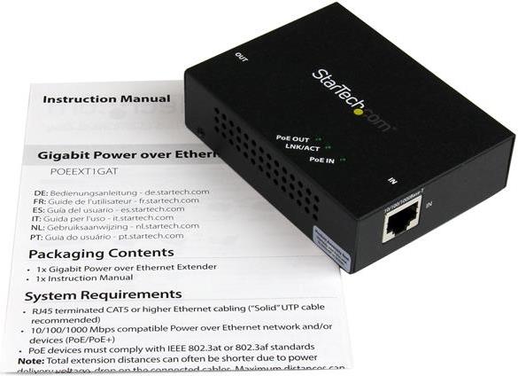 | Produktbeschreibung | StarTech.com Gigabit PoE+ Extender - 802.3at/af - 100m (330ft) - Repeater |