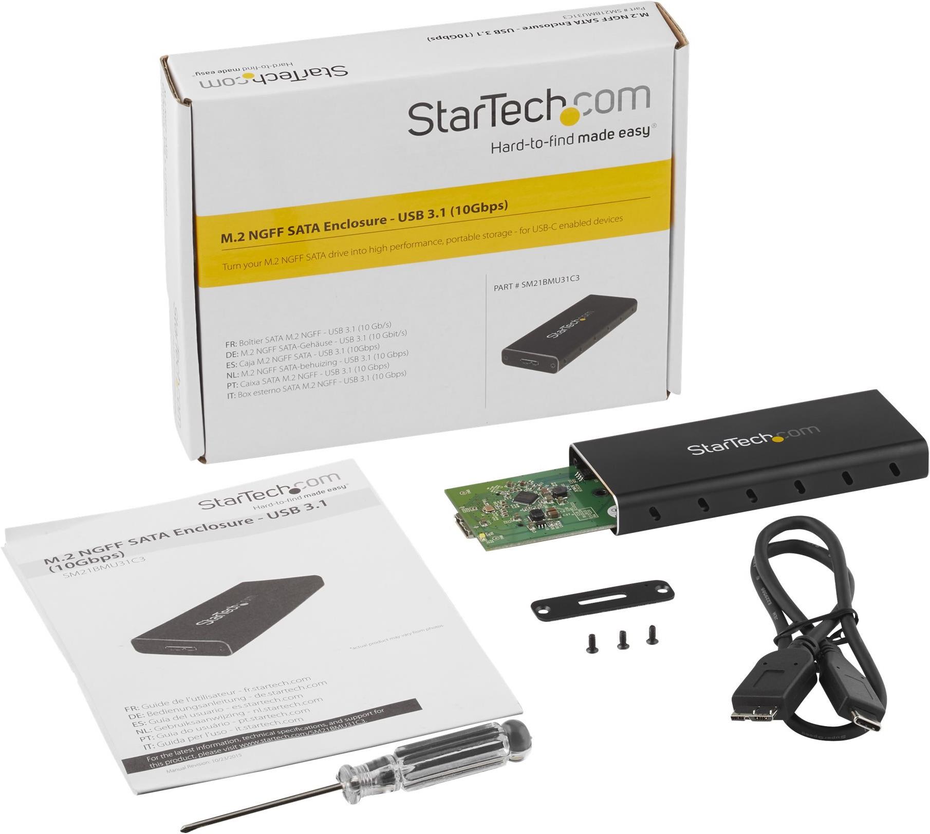 StarTech.com M.2 NGFF SATA Festplattengehäuse - USB 3,1 (10Gbit/s) mit USB-C Kabel - Speichergehäuse - M.2 (M.2) - SATA 6Gb/s - 600MBps - USB 3,1 (Gen 2) - Schwarz, Silber (SM21BMU31C3)