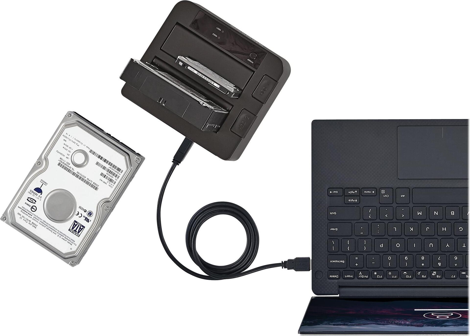Erreichen Sie unvergleichliche Leistung und Speicherkapazität dank dieser USB 3.1 Gen 2 (10 Gbit/s)-Dockingstation für zwei Laufwerke. Sie unterstützt sowohl 2,5-Zoll- als auch 3,5-Zoll-Solid State- und Festplattenlaufwerke mit hoher Speicherkapazität von 12 TB (6 TB pro Laufwerk). Nutzen Sie die Geschwindigkeit von USB 3.1 Gen 2 USB 3.1 Gen 2 bietet höhere Bandbreite und Geschwindigkeit mit Datenübertragungsraten von bis zu 10 Gbit/s – die doppelte Geschwindigkeit von USB 3.0 (USB 3.1 Gen 1). So können Sie die hohe Leistung der neuesten SSDs und Festplatten nutzen und die Engpässe in Ihrer Datenübertragung reduzieren. Bauweise für Einschub von oben für einfachen Laufwerkszugriff Es war nie einfacher, Laufwerke für Desktopcomputer oder Laptops zu docken und zu wechseln. Schieben Sie die Laufwerke einfach in den Steckplatz für Einschub von oben. Werkzeuge oder Einschübe werden nicht benötigt. Die HDD-Ausstoßtaste ermöglicht schnelles und einfaches Entfernen der Laufwerke. Praktische Kompatibilität Die Dockingstation für zwei Laufwerke wird mit einem USB Type-A-auf-B-Kabel geliefert und bietet Abwärtskompatibilität mit vorhandenen USB 3.0-, USB 2.0- und 1.x-Geräten. Sie unterstützt auch UASP für höhere Leistung. Mit einem zusätzlichen [%product id="SAT2IDEADP" text="SATA-auf-IDE-Festplatten-Adapter"%] (SAT2IDEADP) erweitern Sie den Funktionsumfang der Dockingstation und können jede beliebige 2,5- oder 3,5-Zoll-IDE-Festplatte in ein SATA-Festplatten-Dock einsetzen. Die SDOCK2U313 wird mit einer 2-jährigen StarTech.com-Garantie sowie lebenslanger kostenloser technischer Unterstützung geliefert.