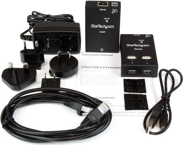 Dieser 4-Port USB 2.0-Extender ist eine einfache und kostengünstige Lösung für mehr Freiraum am Arbeitsplatz. Nun können Sie die Entfernung zu Ihren USB 2.0-Geräten über ein einziges Ethernet-Kabel vergrößern, bis zu 40 m über Cat5 oder Cat6.