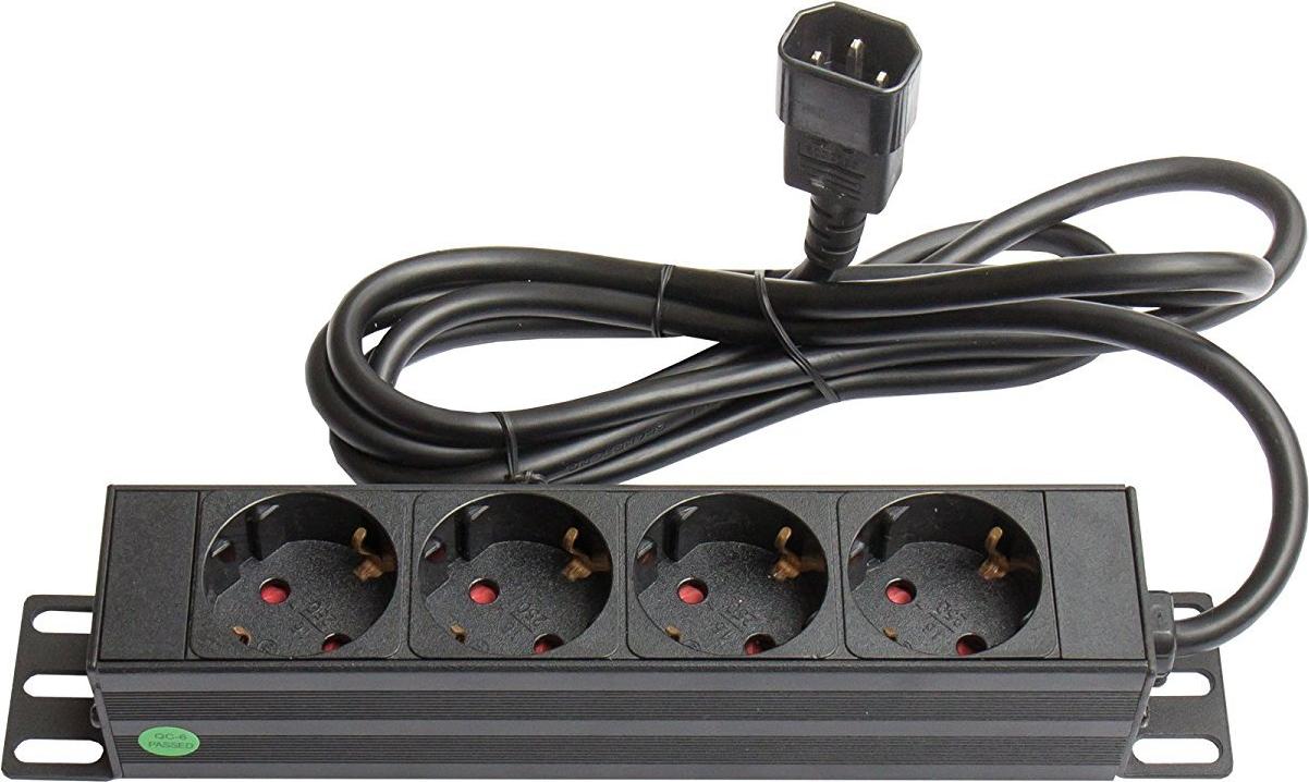 10\" Steckdosenleiste von Good Connections mit vier Schutzkontakt-Anschlüssen zum Einbau in 10\" Netzwerk-, Server- oder Wandschränke und als Wandmontage.