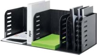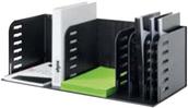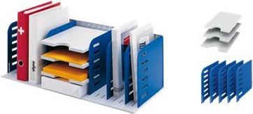 Die geniale Multifunktionsablage verfügt über horizontale und vertikale Fächer. styrorac kann als Stehsammler, Briefablage und als Hängeregistratur eingesetzt werden. Die Einteilung mit stabilen Systemtrennwänden und Tablaren erfolgt individuell. Der vertikale Feinraster von 2,5 cm erlaubt eine optimale Ausnützung der Plattform. Damit lassen sich auch dünne Dossiers, Prospekte und Schnellhefter ohne Durchbiegen ablegen. Für Hängemappen wird ein extra Adapter mitgeliefert, der das Herausrutschen der Mappen verhindert.