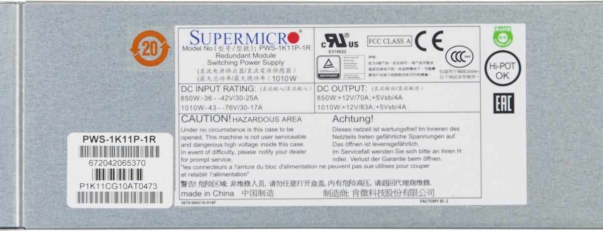 • Supermicro PWS-1K11P-1R (PWS-1K11P-1R)