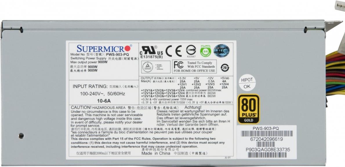 | Produktbeschreibung | Supermicro PWS-903-PQ - Stromversorgung - 900 Watt |