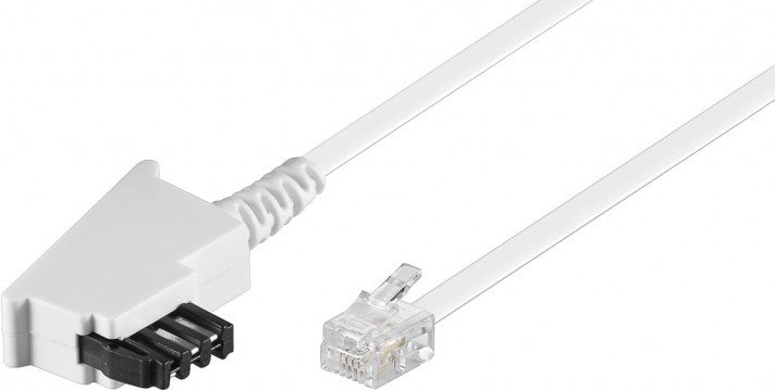 Wentronic Goobay TAE-F-Anschlusskabel (Universal-Pin Out), Weiß, 10 m - TAE-F-Stecker auf RJ11/RJ14-Stecker (6P4C) (68541)