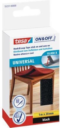 tesa Klettband ON & OFF® UNIVERSAL schwarz, 1 Rolle (55231-00000-02)