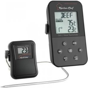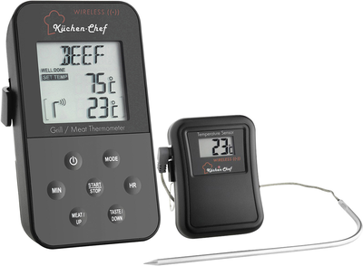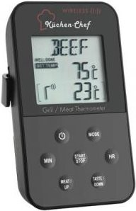 Zur optimalen Zubereitung von Fleisch und Geflügel durch Überwachung der Kerntemperatur (Reichweite max. 40 m), verwendbar für den Backofen oder Grill, ideal auch zum Garen bei Niedrigtemperatur, verschiedene ...