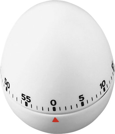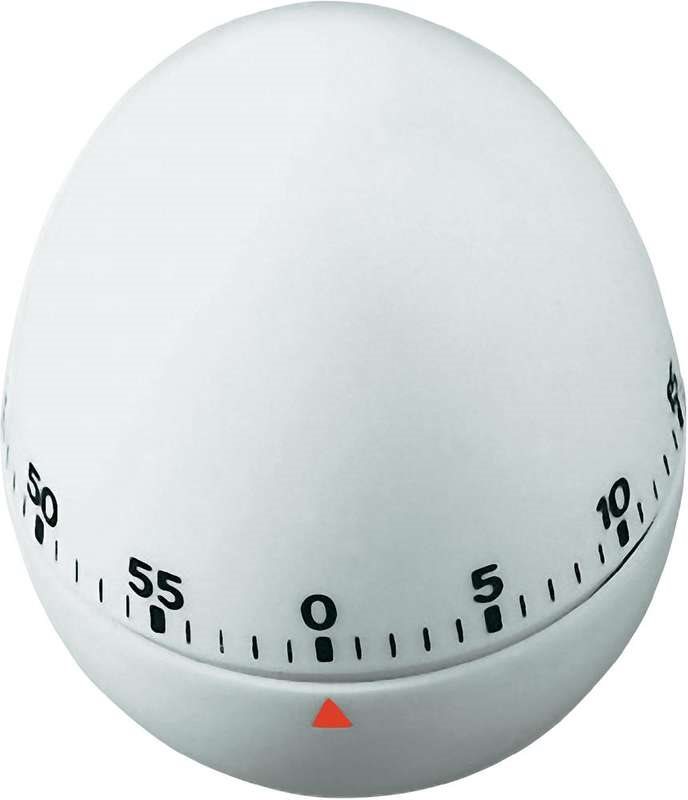 Küchen-Timer \'Ei\' MetallaufzugswerkHilft Ihnen in der Küche die Zeit nicht aus den Augen zu verlieren.Technische Daten: Anzeige (digital/mechanisch/analog): analogAusführung (Uhren): Tischuhr,HandaufzugFarbe: WeißGewicht: 65 gProduktabmessung, Höhe: 74 mmProduktabmessung, Ø: 60 mmTimerzeit: 60 minTimerzeit (max.): 60 minUhren-Typ (Kategorisierung): Timer