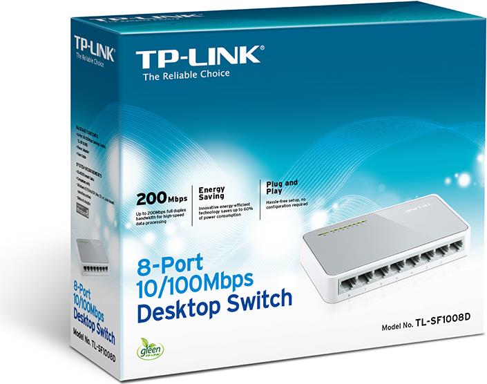 TP-Link TL-SF1008D 8-Port 10/100Mbps Desktop Switch - Switch - 8 x 10/100 - Desktop (TL-SF1008D)