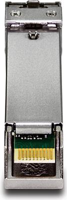 Der im laufenden Betrieb austauschbare TEG-10GBSR von TRENDnet, ein 10GBASE-SR SFP+ Multi-Mode LC Modul, funktioniert mit einem MSA-kompatiblen SFP+ Slot. Dieser multimodale Transceiver überbrückt Entfernungen bis zu 550 Meter (1,804 Fuß), enthält einen LC-Duplex-Steckverbinder und unterstützt bis zu 10,5 Gbit/s Netzwerkdurchsatzgeschwindigkeit. Über Digital Diagnostics Monitoring (DDM) werden wichtige Geräteparameter wie Übermittlungs-/Empfangsleistung, Temperatur und Spannung aufgezeichnet.