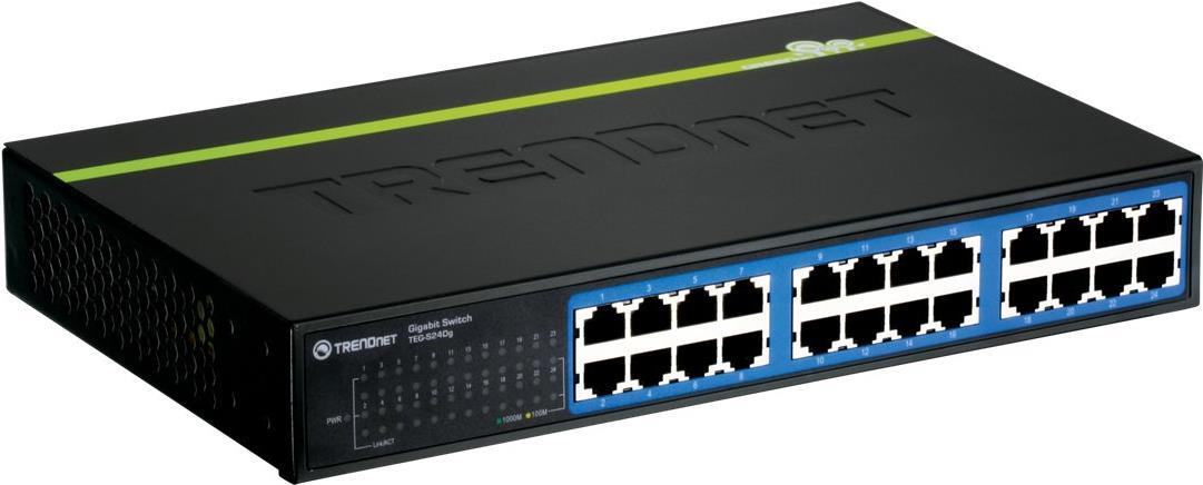 Der kompakte 24-fache GREENnet-Gigabit-Switch (TEG-S24DG) zeichnet sich durch eine hohe Bandbreite, Leistungsfähigkeit, Benutzerfreundlichkeit und Zuverlässigkeit aus und reduziert den Stromverbrauch um bis zu 70%. Die GREENnet-Technologie regelt die Spannung automatisch nach Bedarf, so dass erhebliche Mengen an Energie gespart werden können. Die integrierte GREENnet-Technologie ist sofort funktionsfähig und braucht nicht erst eingerichtet zu werden. Mit Hilfe der Gigabit-Geschwindigkeit und einer Umschaltrate von 48 GBit/s im Vollduplexmodus können Sie die Effizienz Ihres Büros erheblich steigern und alle Engstellen im Netzwerk beseitigen. Das integrierte Netzteil reduziert den Kabelbedarf und die Diagnose-LEDs helfen bei Behebung von Netzwerkproblemen. Dieser aus Metall bestehende, robuste Umschalter lässt sich per Plug&Play installieren und bietet sofort eine zuverlässige Netzwerkverbindung in hoher Geschwindigkeit.