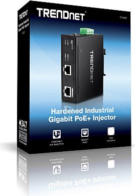 Der TI-IG30 von TRENDnet ist ein zuverlässiger industrieller Gigabit PoE+ Injektor mit Schutzklasse IP30 und gehärteten Komponenten, der für extreme industrielle Umgebungen zertifiziert ist. Schließen Sie den TI-IG30 an einen nicht-PoE Gigabit Switch und und schließen Sie dann ein Ethernet-Kabel bis zu 100 Meter (328 Fuß) an, um ein PoE-, PoE+, oder ein Hochleistungs-PoE+ Gerät zu vernetzen.