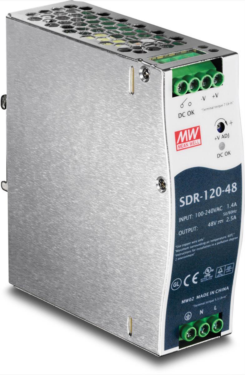 Das TI-S12048 liefert bis zu 120 Watt Leistung für industrielle PoE-Geräte wie Switches, Netzwerkkameras und Wi-Fi Access Points. Dieses nach IP30 eingestufte Netzteil verfügt über aktive PFC, eine integrierte DIN-Schienenbefestigung und einen Überlaststromschutz.