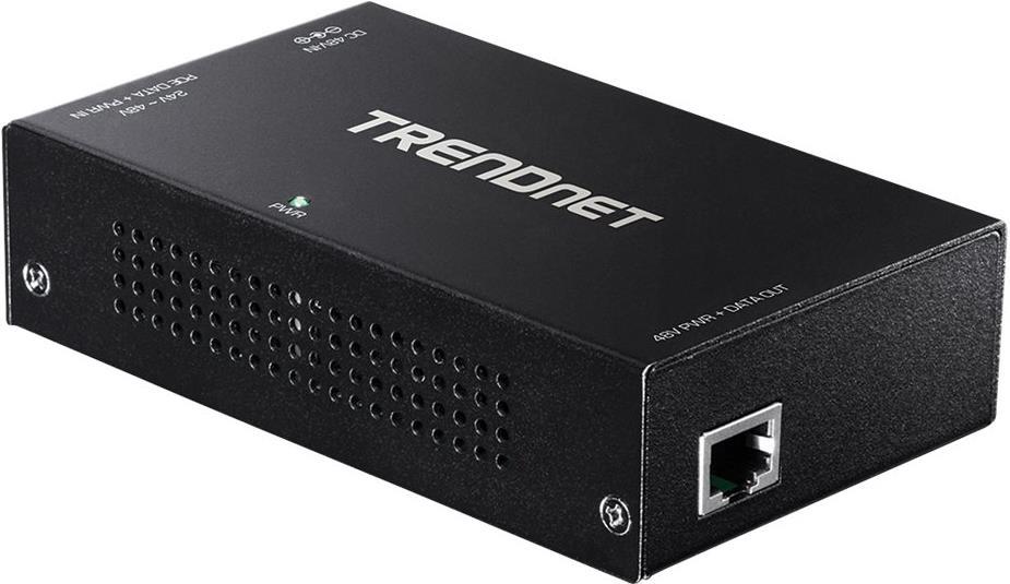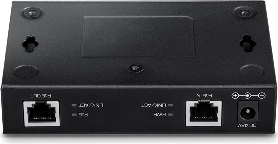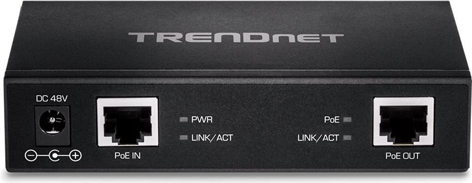 TRENDnet Gigabit PoE+ Repeater/Verstärker TPE-E110 erweitert und verstärkt eine Gigabit PoE/PoE+ Netzwerkverbindung auf einen entfernten Standort. Er entdeckt automatisch ein PoE (15,4 Watt) oder PoE+ (30 Watt) Signal und erweitert es um zusätzliche 100 Meter auf eine Gesamtentfernung von bis zu 200 Meter (656 Fuss) vom PoE-Gerät entfernt.