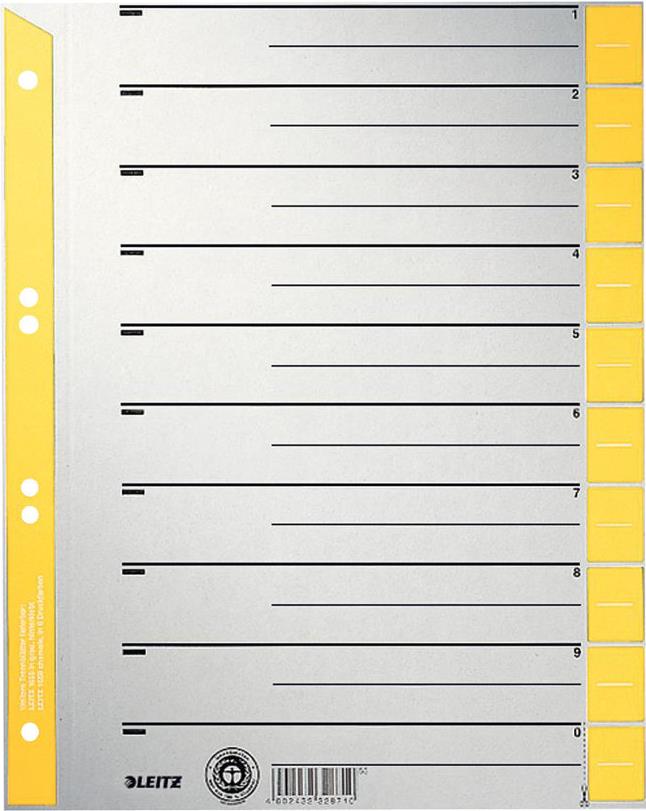 Die Blanko-Registertabe können in verschiedenen Längen ausgeschnitten werden.
