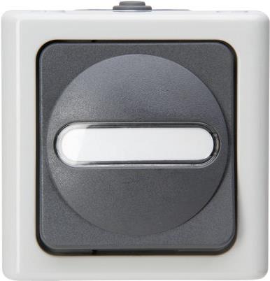 Aufputz-Feuchtraum, Taster (1-polig, Wechsler, mit N-Klemme), beleuchtet, 10AX, 250V~, IP44, BLUE ELECTRIC, grau