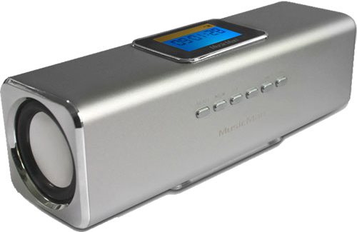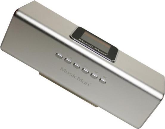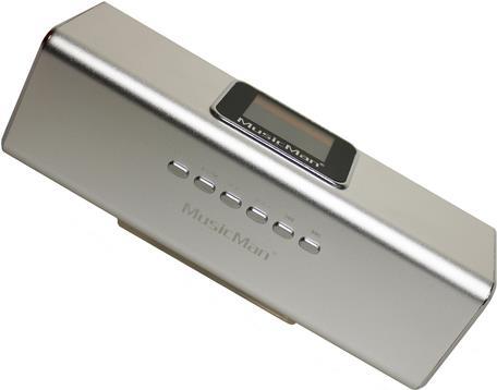 MUSICMAN Stereo Soundstation mit hervorragender Sound-Qualität & LCD Display (128x32mm schwarz/weiß). Diese Soundstation aus Aluminium gefertigt. In einem trendigen, modernen Design. Mit blau beleuchten Standfuß.