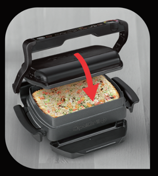 Der OptiGrill+ Snacking & Baking bietet mit dem vielfältigen Zubehör unendlich viele Zubereitungsmöglichkeiten wie Backen, Aufwärmen oder Gratinieren. Inklusive der Technologie \"Automatic Sensor Cooking\": Garzeit und -temperatur werden auf Grundlage von 6 Garprogrammen (Burger, Steaks, Sandwiches, Würstchen, Fisch, Geflügel) automatisch je nach Dicke und Menge des Grillguts reguliert. Zusätzlich gibt es einen Modus zum Auftauen von Gefriergut. Eine direkte Überwachung ist über den Lichtindikator möglich: Violett für Vorwärmen, blau, dann grün zum Garbeginn, gelb, wenn das Grillgut blutig gebraten ist, orange für medium und rot für durchgebraten. Auf den Punkt für jeden Geschmack! Einfach den Deckel anheben und das Fleisch herausnehmen, wenn es fertig ist. Der Rest kann weiter garen! Mit dem zusätzlichen manuellen Modus mit 4 regulierbaren Temperaturen können Sie verschiedenste Lebensmittel, unter anderem auch Früchte und Gemüse, genau so zubereiten, wie es Ihnen schmeckt.Produkttext[/head]Automatisches Garen mit Sensor und Anzeige der Garstufe für perfekte GrillergebnisseLernen Sie den OptiGrill+ Snacking & Baking kennen, mit einem manuellen Modus mit 4 Temperaturstufen für unendlich viele Zubereitungsmöglichkeiten. Für noch mehr Vielfalt ermöglicht das enthaltene Snacking & Baking Zubehör backen, aufwärmen oder gratinieren dank des manuellen Programms mit 4 einstellbaren Temperaturlevel. Spülmaschinengeeignet und mit wärmisoliertem Handgriff für bessere Handhabung. Dank der Technologie „Automatic Sensor Cooking“ erkennt OptiGrill+ sofort die Anzahl der auf der Fläche platzierten Stücke sowie ihre Dicke und reguliert die Temperatur und Garzeit für optimale Ergebnisse automatisch. Der Lichtindikator und das akustische Signal ermöglichen die direkte Überwachung des Garvorgangs, damit das Fleisch am Ende so zubereitet ist, wie Sie es mögen: blutig, medium oder durchgebraten. Über 6 Garprogramme gelingt die Zubereitung perfekt: Burger, Geflügel, Sandwiches, Würstchen, Steaks und Fisch. Zudem gibt es einen Modus zum Auftauen von Gefriergut und einen manuellen Modus mit 4 Temperatureinstellungen. Zusätzliche Vorteile: eine Grillfläche von ca. 600 cm?2; für 2 bis 4 Portionen, antihaftversiegelte Aluguss-Platten mit einer Neigung von 7° für optimalen Fettablauf sowie Saftauffangbehälter.[head]Hauptmerkmale