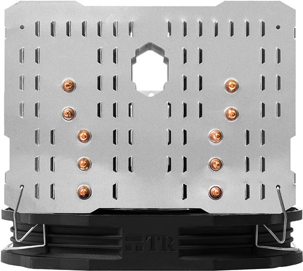 Das spezielle Design der Aluminiumfinnen des Kühlkörpers ermöglicht einen besonders geringen Luftwiderstand und ist für langsam drehende Lüfter optimiert. Die zusätzliche Perforierung der Kühllamellen wirkt einem Hitzestau zwischen den einzelnen Lamellenschichten entgegen und unterstützt somit zusätzlich die effiziente Temperaturreduzierung.