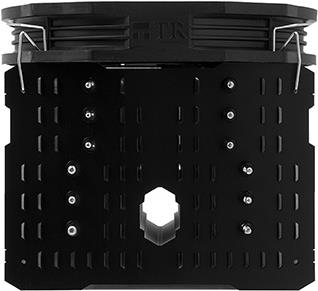 In Anlehnung an die von der Fachpresse hochdekorierten "IB-E" Flaggschiffe Silver Arrow und Archon X2 verfügt der Macho in der Revision B ebenfalls über eine deutlich vergrößerte, vernickelte und hochglanzpolierte Base in der Abmessung 53 x 40 mm. Eine weitere Neuerung des Macho Rev. B betrifft den mitgelieferten Lüfter. Der Kühler wird serienmäßig mit dem temperaturgeregelten Lüfter TY 147 A (PWM) ausgeliefert. Mit einer Drehzahl von 300 bis 1.300 U/min (+/-15%) ist der TY 147 A nochmals deutlich geräuschärmer als das Vorgängermodell (TY 147: 900-1.300 U/Min). Somit ist der Macho Rev. B im Normalbetrieb von außen praktisch nicht wahrnehmbar. Der TY 147 A ist mit einem verschleißarmen "Enhanced Hyper-Flow Bearing" ausgestattet. Die Förderleistung des auf ultra-silent Betrieb optimierten Lüfters variiert zwischen 29 und beeindruckenden 125 m3/h bei einer Geräuschentwicklung von ca. 15-21 dB(A). Der bewährte Lüfter mit seinem einmaligen Design verfügt über die Montagepunkte eines konventionellen 120 mm Lüfters und weist dabei einen größeren Innendurchmesser als gebräuchliche 140 mm Lüfter auf. Der Lüfter wird mit den beiliegenden, überarbeiteten Klammern am Kühlkörper sicher montiert - selbstklebende Antivibrations-Pads für eine entkoppelte Befestigung befinden sich im Lieferumfang. Final wurde der Macho Rev. B auch optisch aufgewertet: Die kupfernen Heatpipes sind nun vernickelt und ergeben in Verbindung mit der schwarz eloxierten Top-Fin eine wohl einmalig edle Optik. Die ursprüngliche Konzeption des Macho wurde beibehalten: Der Kühlkörper ist in Richtung der Gehäuserückwand ausgerichtet, um Inkompatibilitäten bei der Verwendung von Speichermodulen mit hoch bauenden Heatspreadern zu vermeiden. Die Aluminium Kühlrippen sind mit mehreren Luftlöchern versehen, die einem Luftstau zwischen den einzelnen Kühlrippen entgegenwirken. Über das spezielle Design der Aluminiumfinnen des Kühlkörpers wird zudem ein besonders geringer Luftwiderstand realisiert. Der ovale Luftkanal in der Mitte des Kühlers sorgt für kontrollierte Luftverwirbelungen innerhalb des Kühlkörpers, wodurch die Abwärme noch effektiver abgeführt werden kann. Wie bei allen leistungsstarken Kühlern aus unserem Hause wird bei dem Macho in der Revision B auf die vielfach bewährte Heatpipe-Technologie zurückgegriffen. Gleich sechs leistungsstarke 6 mm Heatpipes sorgen für eine besonders effiziente Ableitung der Prozessor-Abwärme. Die Heatpipes sind fest in die vernickelte Kupfergrundplatte integriert, um eine möglichst effektive Wärmeableitung zu gewährleisten.