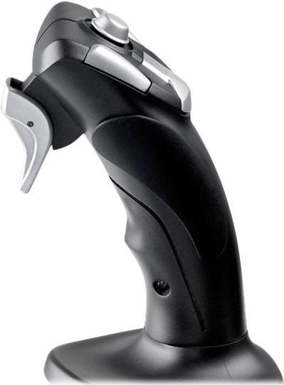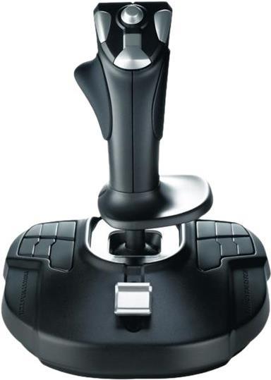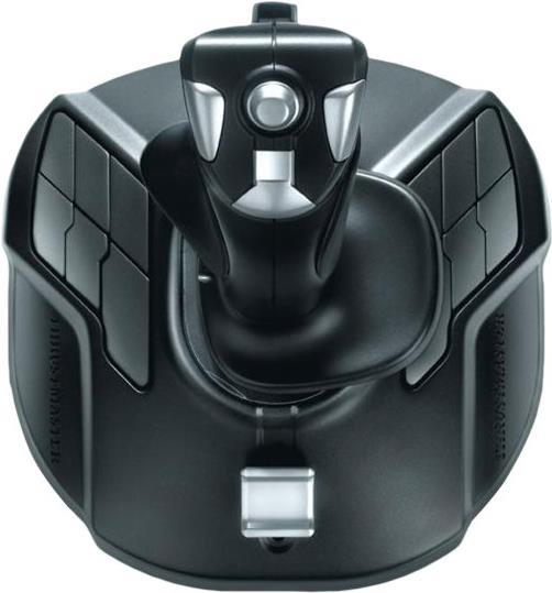 Der T.16000M FCS verfügt über vier Achsen, 16 Action-Tasten mit fühlbarer Erkennung im Stil der Blindenschrift, einen achtwegigen Perspektiven-Kopfschalter (POV) und einen ergonomischen Trigger.