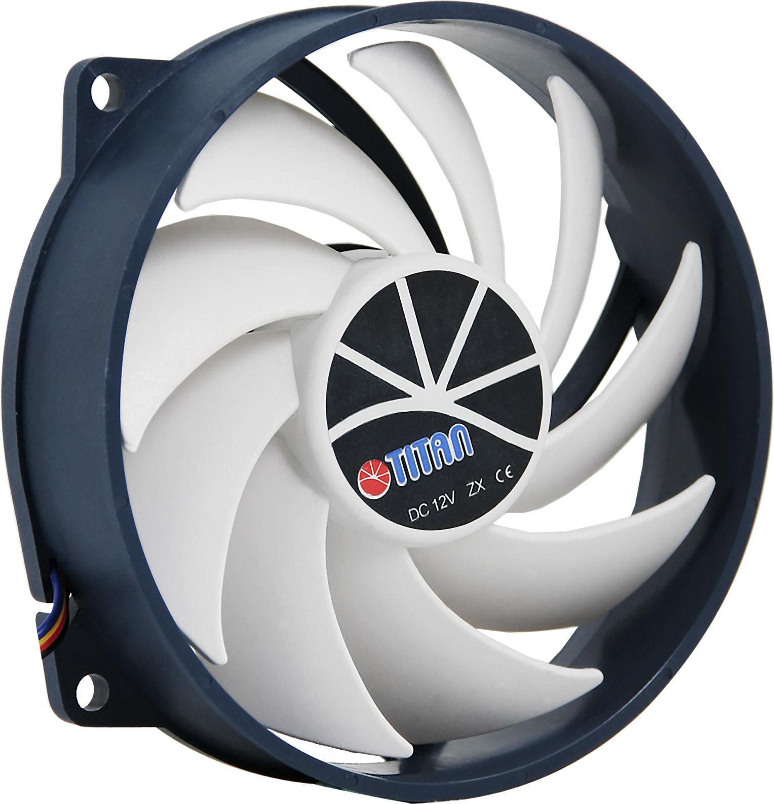 Titan Lüfter Kukri Fan, 95 x 95 x 25 mm, mit PWM-Tachosignal, Flüssigkeits-Gleitlager 12 V DC, 13,57 bis zu 39,19 mü/h, 900 - 2600 U/min, <10 - 27dB(A) (TFD-9525H12ZP/KU(RB))