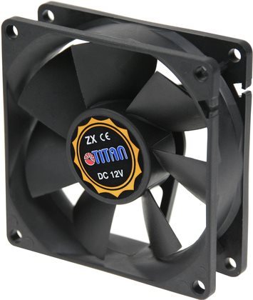 Titan Lüfter, 80 x 80 x 25 mm, mit Tachosignal, Flüssigkeits-Gleitlager 12 V DC, 42,5 mü/h, 2500 U/min, <28 dB(A) (TFD-8025M12Z)