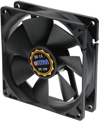Titan Lüfter, 92 x 92 x 25 mm, mit Tachosignal, Flüssigkeits-Gleitlager 12 V DC, 61,5 mü/h, 1800 U/min, <17 dB(A) (TFD-9225L12Z)