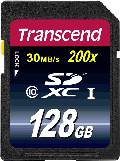 Transcend SDXC Card 128GB Class10 MLC Class 10 konform/ Lesen/Schreiben (bis zu): 22MB/s / 16MB/s/ ideales Produkt für aktuelle High-End SDXC-kompatible digitale Spiegelreflexkameras und HD Camcorder/ auch in SDHC-Geräten verwendbar/ hohe Speicherkapazität/ unterstützt exFAT Dateisystem/ (TS128GSDXC10)