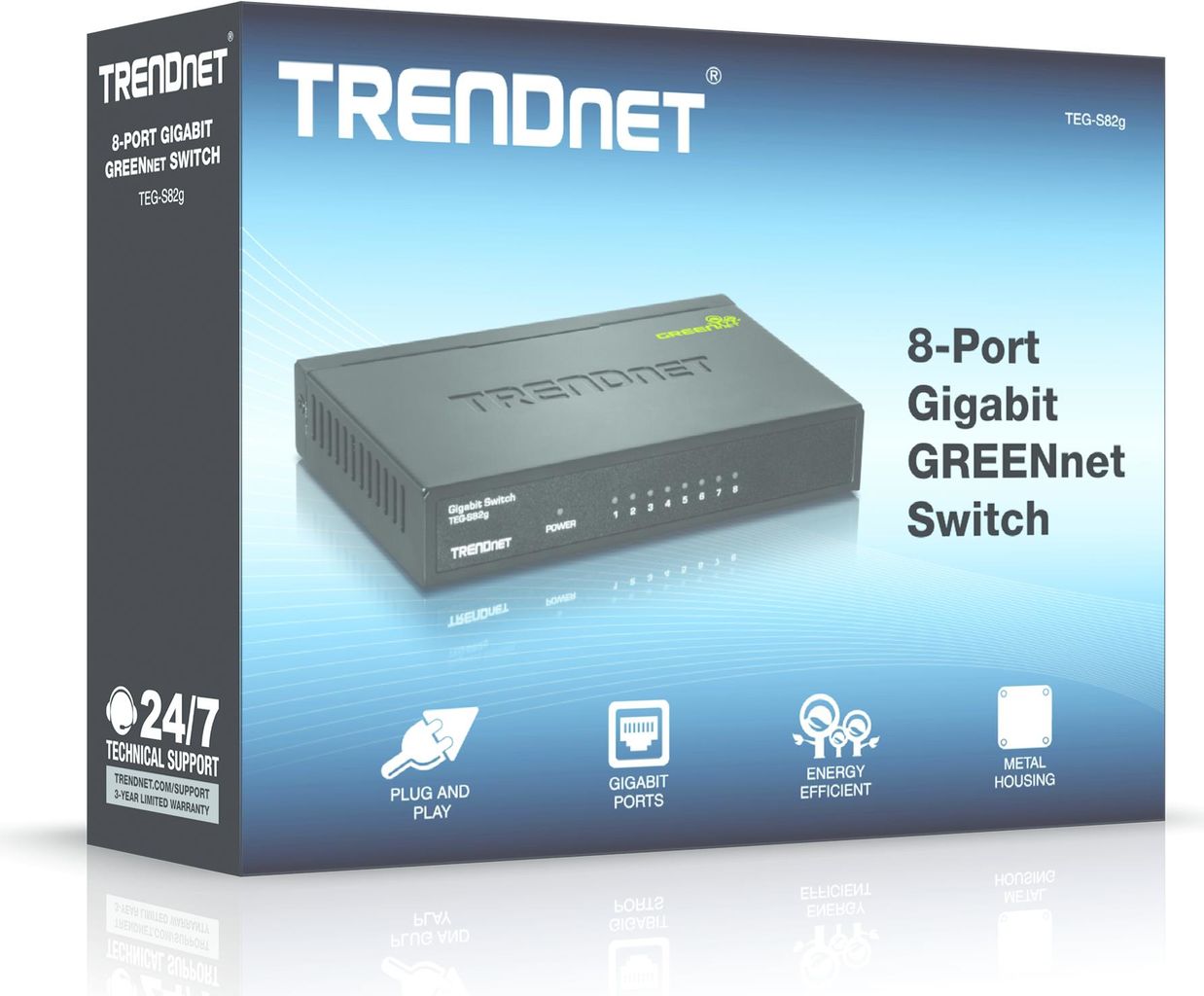 Der kompakte 8-Port Gigabit GREENnet Switch sorgt für eine hohe Bandbreite, ist zuverlässig und leicht zu benutzen, und reduziert den Stromverbrauch um bis zu 70%. Die GREENnet-Technologie regelt die Spannung automatisch nach Bedarf, so dass erhebliche Mengen an Energie gespart werden können. Mit Hilfe der Gigabit-Geschwindigkeit und einer Switchingrate von 16 GBit/s im Vollduplexmodus können Sie die Effizienz Ihres Büros erheblich steigern und alle Engstellen im Netzwerk beseitigen. Dieser aus Metall bestehende, robuste Switch lässt sich per Plug & Play installieren und bietet sofort eine zuverlässige Netzwerkverbindung in hoher Geschwindigkeit.