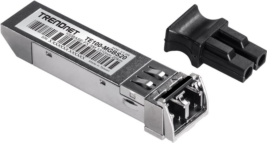 Das 100Base-FX SFP Singlemode LC Modul, Modell TE100-MGBS20, funktioniert mit Standard SFP (Mini-GBIC) Slots an den meisten Switchen und unterstützt Singlemode Netzwerkübertragungsgeschwindigkeiten von bis zu 155 Mbps. Der TE100-MGBS20 ist kompatibel mit Duplex-LC Glasfasersteckertypen und unterstützt Glasfaserverbindungsentfernungen von bis zu 20 Kilometern (12,4 Meilen).