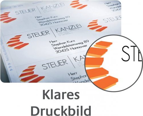 Die weißen, permanent haftenden Universal-Etiketten 6175 im Format 105x48mm von AVERY ZWECKFORM eignen sich z.B. zur Beschriftung von Prospekthüllen oder für die Dt. Post Internetmarke (300 Etiketten/Packung). Sie können sich auf einen staufreien Druckerdurchlauf ohne Klebstoffablagerungen verlassen. Druckerdurchlauf für Laserdrucker getestet und bestätigt durch den TÜV SÜD. Starke Klebkraft in Top Qualität: Aufkleber kleben zuverlässig auf Papier, Karton, Glas und Kunststoffen! Universaletiketten für jeden Bedarf mit einem klaren Druckbild ohne Verwischen - durch beste Tonerverankerung. Die umweltfreundlichen und FSC® zertifizierten Aufkleber sind chlorfrei gebleicht.