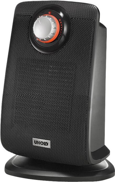 Gegen Feuchtigkeit im Bad ist er dank Tropfwasserschutz bestens gewappnet: der Keramik-Heizlüfter Bad von UNOLD. Dazu kommt er dynamisch mit Schwung daher, denn zur besseren Luftverteilung dreht er sich oszillierend um 75 Grad. So kommt mit jeder Drehung warme Luft in alle Ecken.Das 2-Stufen-Keramik-Heizelement gibt entweder 1.200 oder 2.000 Watt Heizleistung ab. Der Heizlüfter schaltet sich automatisch ab, sollte er einmal umfallen. Die Gerätetemperatur wird stufenlos durch ein Thermostat kontrolliert.Der 4-Stufen-Schalter informiert über den Status des Gerätes. Getragen wird das Fliegengewicht am integrierten Tragegriff. Hören wird man allerdings wenig, wenn der Keramik-Heizlüfter im Bad arbeitet: er ist besonders leise.Produkttext[/head]Gefahrlos heizen im Bad Keramik-Heizlüfter mit TropfwasserschutzGegen Feuchtigkeit im Bad ist er dank Tropfwasserschutz bestens gewappnet: der Keramik-Heizlüfter Bad von UNOLD. Dazu kommt er dynamisch mit Schwung daher, denn zur besseren Luftverteilung dreht er sich oszilierend um 75 Grad. So kommt mit jeder Drehung warme Luft in alle Ecken. Das 2 Stufen Keramik-Heizelement gibt entweder 1.200 oder 2.000 Watt Heizleistung per Gebläse ab. Der Heizlüfter schaltet sich automatisch ab, sollte er einmal umfallen. Die Gerätetemperatur wird stufenlos durch ein Thermostat kontrolliert. Der vier Stufen LED-Schalter informiert über den Status des Gerätes. Getragen wird das Fliegengewicht am integrierten Tragegriff. Hören wird man allerdings wenig, wenn der Keramik-Heizlüfter im Bad arbeitet: er ist besonders leise.[head]Hauptmerkmale