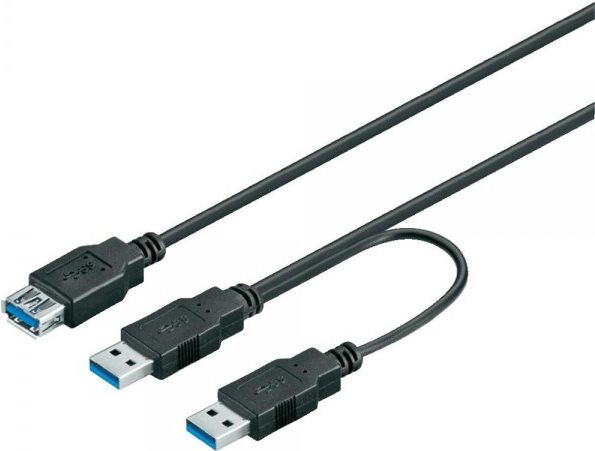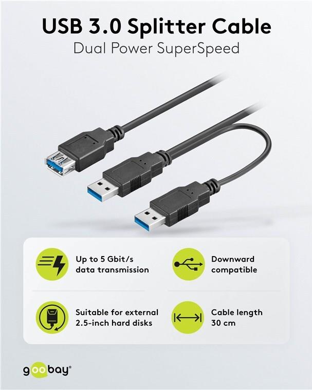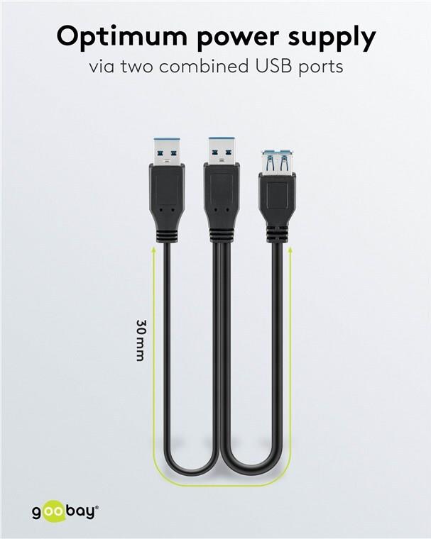 Wentronic Goobay USB 3.0 Dual Power SuperSpeed Kabel, Schwarz, 0.3 m - USB 3.0-Stecker (Typ A) , USB 3.0-Stecker (Typ A) > USB 3.0-Buchse (Typ A) (95749)