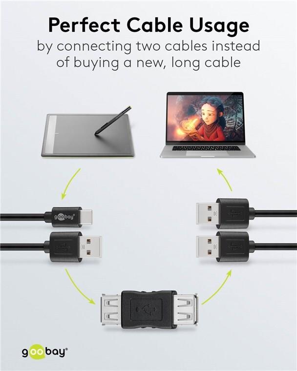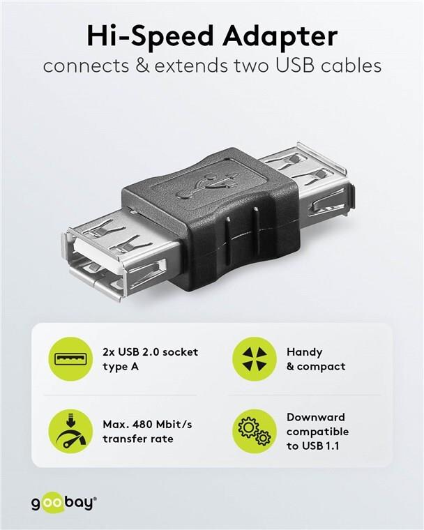 Wentronic Goobay USB 2.0 Hi-Speed Adapter, USB 2.0-Buchse (Typ A), Schwarz - USB 2.0-Buchse (Typ A) > USB 2.0-Buchse (Typ A) (50293)