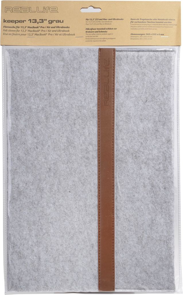 Der RealLife keeper von ultron sorgt für stilbewussten Schutz von Ihrem 13,3 Zoll (33,78 cm) Macbook und Ultrabook. Der edle Filz-Begleiter verfügt über einen Mikrofaser-Innenteil. So schützt er das Gerät vor alltäglichen, äußeren Einflüssen und verhindert Kratzer sowie Schmutz.