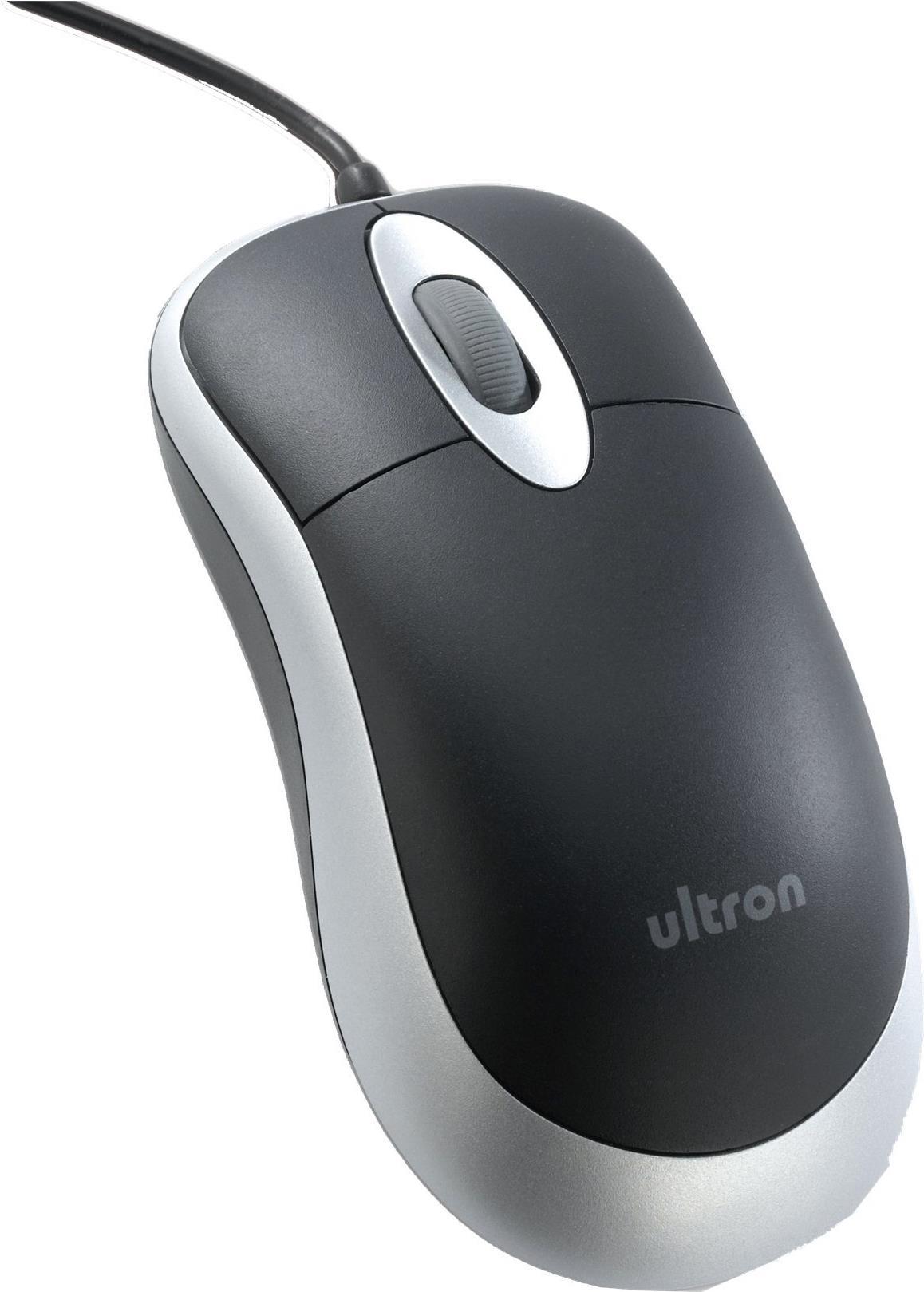 Ultron UM-100 Basic Optical Mouse USB Scrallrad, ergonomisches Design, Auflösung 800dpi/ Schnittstellen: USB/ Technologie: optisch, kabelgebunden/ Ausstattung: 3 Tasten/ Farbe: schwarz/silber (49308)