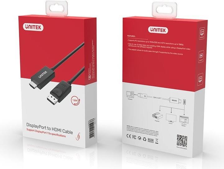 Unitek Displayport-Kabel TO HDM I 1,8 M; Y-5118CA (Y-5118CA)