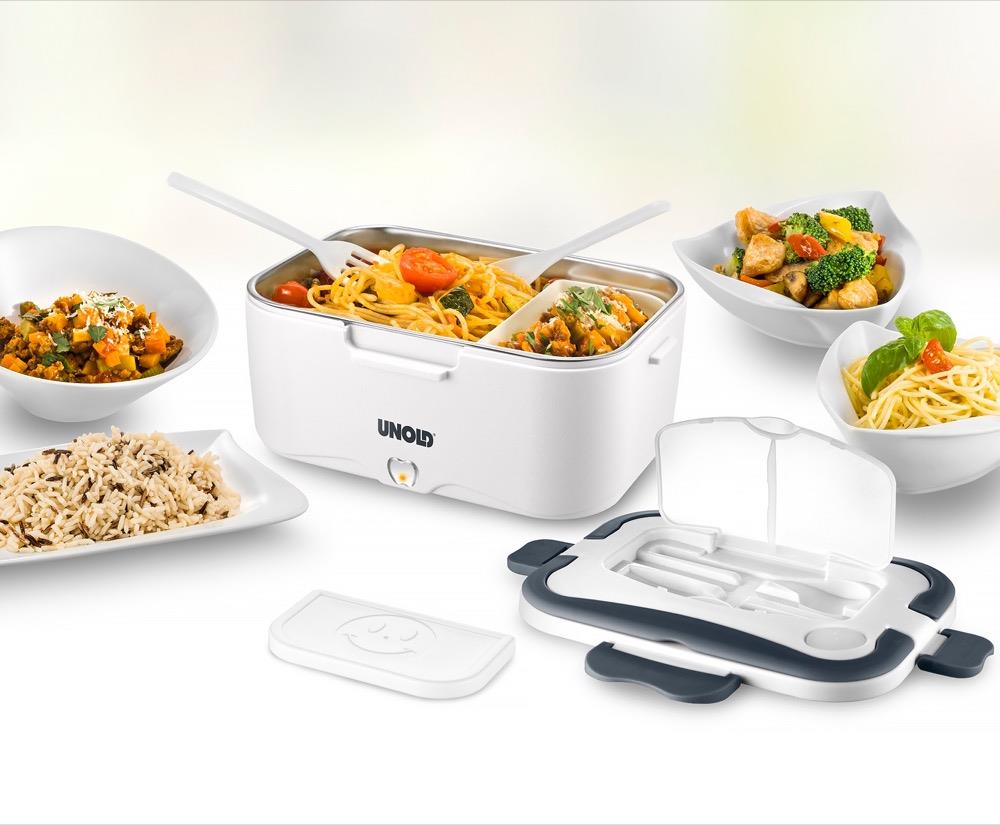 Leckereien rein, Strom an und fertig ist das Mittagessen! Für alle, die keine Mikrowelle im Büro haben oder viel unterwegs sind, ist die elektrische UNOLD Lunchbox eine hervorragende Lösung.