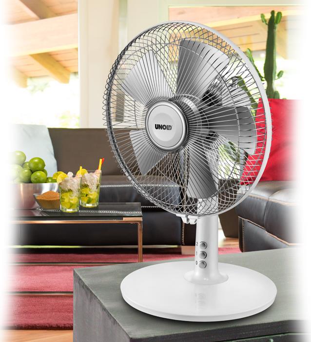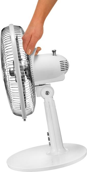 Der Tischventilator Silverline sorgt optisch und praktisch für frischen Wind. Die 3-stufige Geschwindigkeitsregelung lässt sich ganz einfach per Tastendruck bedienen. Die zuschaltbare Oszillation und der verstellbare Neigungswinkel optimieren die Luftzirkulation.Produkttext[/head]Der TISCHVENTILATOR Silverline sorgt optisch und praktisch für frischen Wind. Die 3-stufige Geschwindigkeitsregelung lässt sich ganz einfach per Tastendruck bedienen. Die zuschaltbare Oszillation und der verstellbare Neigungswinkel optimieren die Luftzirkulation. Das Ventilatorgehäuse ist in stylischer Chromefarbe und die fünf Ventilatorflügel in schickem Silbermatt gehalten. Der Gerätefuß ist weiß glänzend. Am praktischen Tragegriff lässt sich das Gerät problemlos und leicht transportieren.[head]Hauptmerkmale